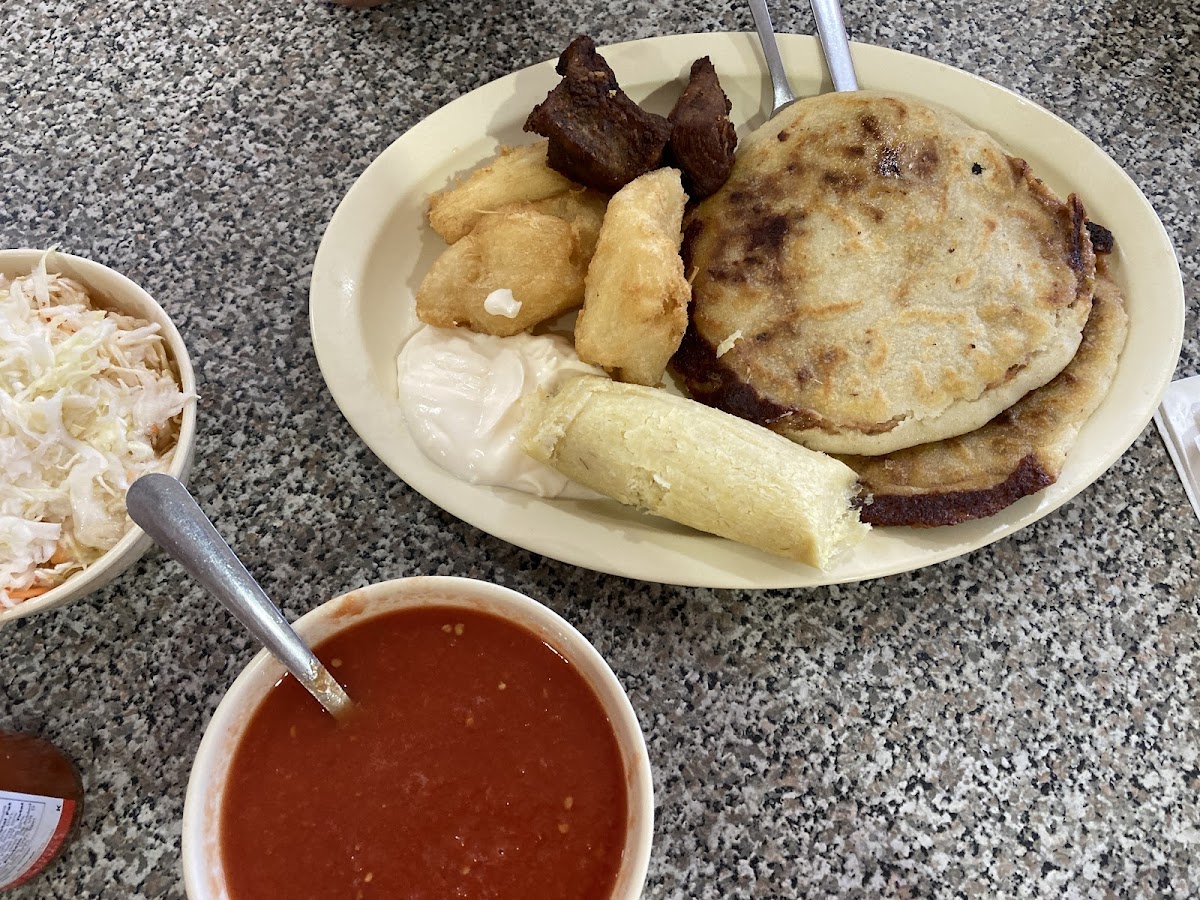 This spot is best known for its pupusas, the traditional Salvadoran stuffed corn tortillas that come in generous portions and a variety of fillings. Locals often opt for the Conbinado De Pupusas to sample multiple flavors, from classic bean and cheese to more unique options like Pupusa De Calabazas or the Ricas Pupusas Salvadoreñas. Beyond pupusas, the menu includes homey comfort dishes like Mariscada and Mojarra Frita, as well as soups such as Sopa De Gallina India and several seafood options served with rice, tortillas, and salad, reflecting a genuinely Salvadoran approach to hearty, often seafood-focused meals.